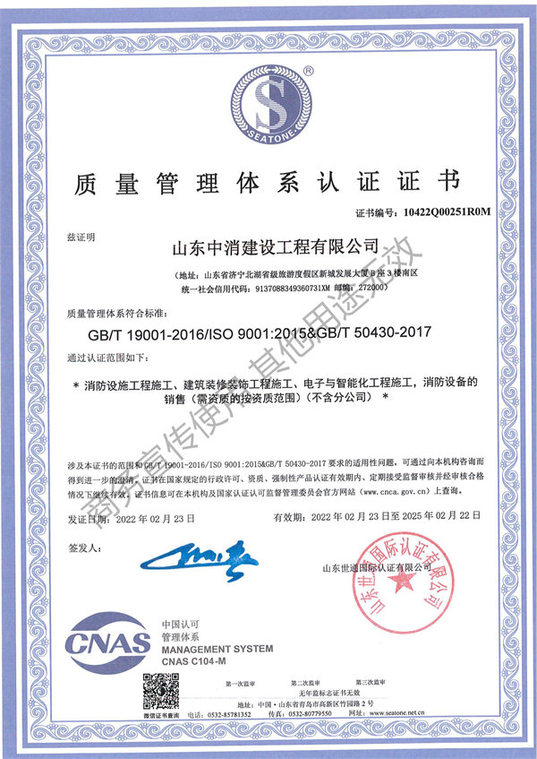 公司重視人才培養,秉承以人為本、和諧共享的發展方針。匯集了一批高水平高素質的工程專業管理人才,組建了一支實踐經驗豐富的工程技術專業隊伍,現有一級消防工程師10余人、二級注冊建造師20余人,高級工程師、工程師及助理工程師等30余人,經國家相關部門培訓合格的重點崗位專業技術人員50余人。目前已在濟南、青島、日照、濰坊、東營、德州、臨沂、淄博、菏澤、棗莊、滄州、新疆等地設二十余家分公司。